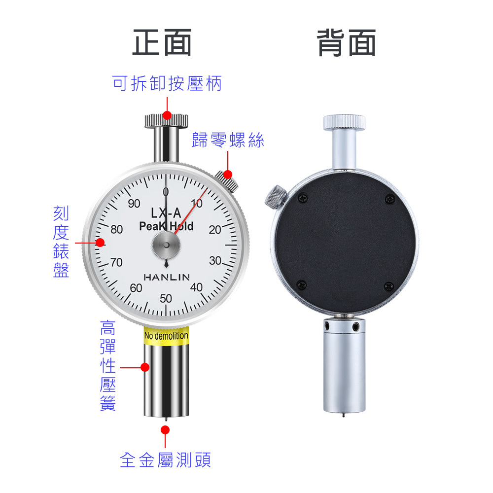 ●名稱:HANLIN 指針式邵氏硬度計【雙針款 DBLX-A-平頭】