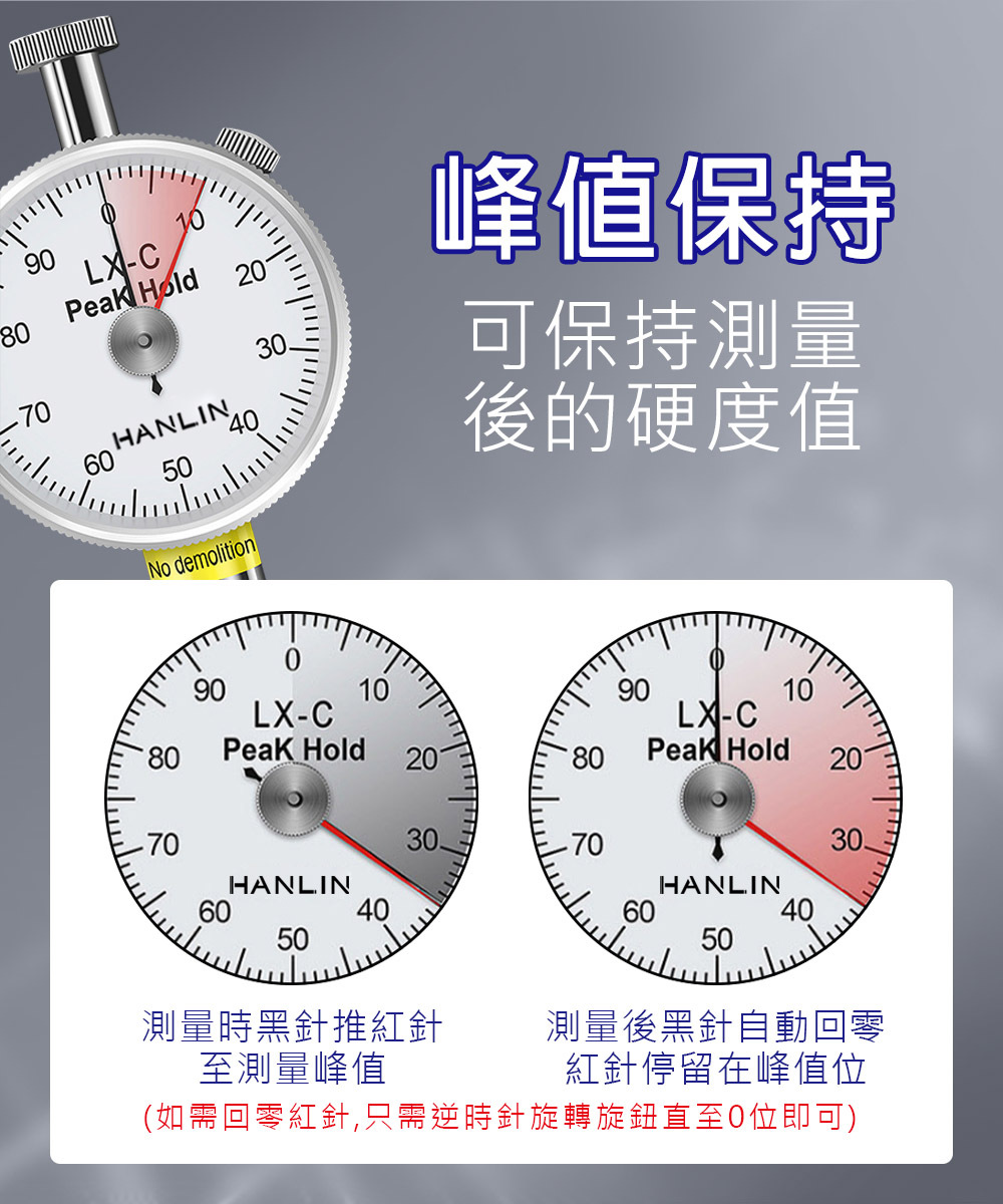 ●名稱:HANLIN 指針式邵氏硬度計【雙針款 DBLX-C-圓頭】