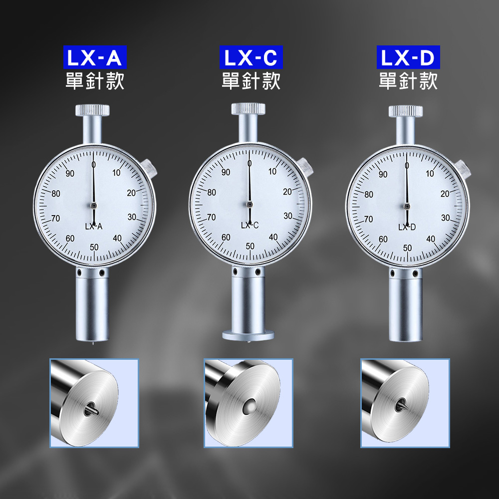 HANLIN LX-ACD 單針款 邵氏硬度測試計 指針 硬度 測量儀 LX-A型 平頭 LX-C型 圓頭 LX-D型 尖頭 合金探頭 刻度錶盤 高彈性壓簧 高精度 測試 易操作 石蠟 鞋底 橡膠 海綿 發泡板 瑜珈墊 壓克力 玻璃 塑膠